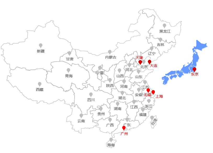 公司同时在下述地区设立技术支持中心: